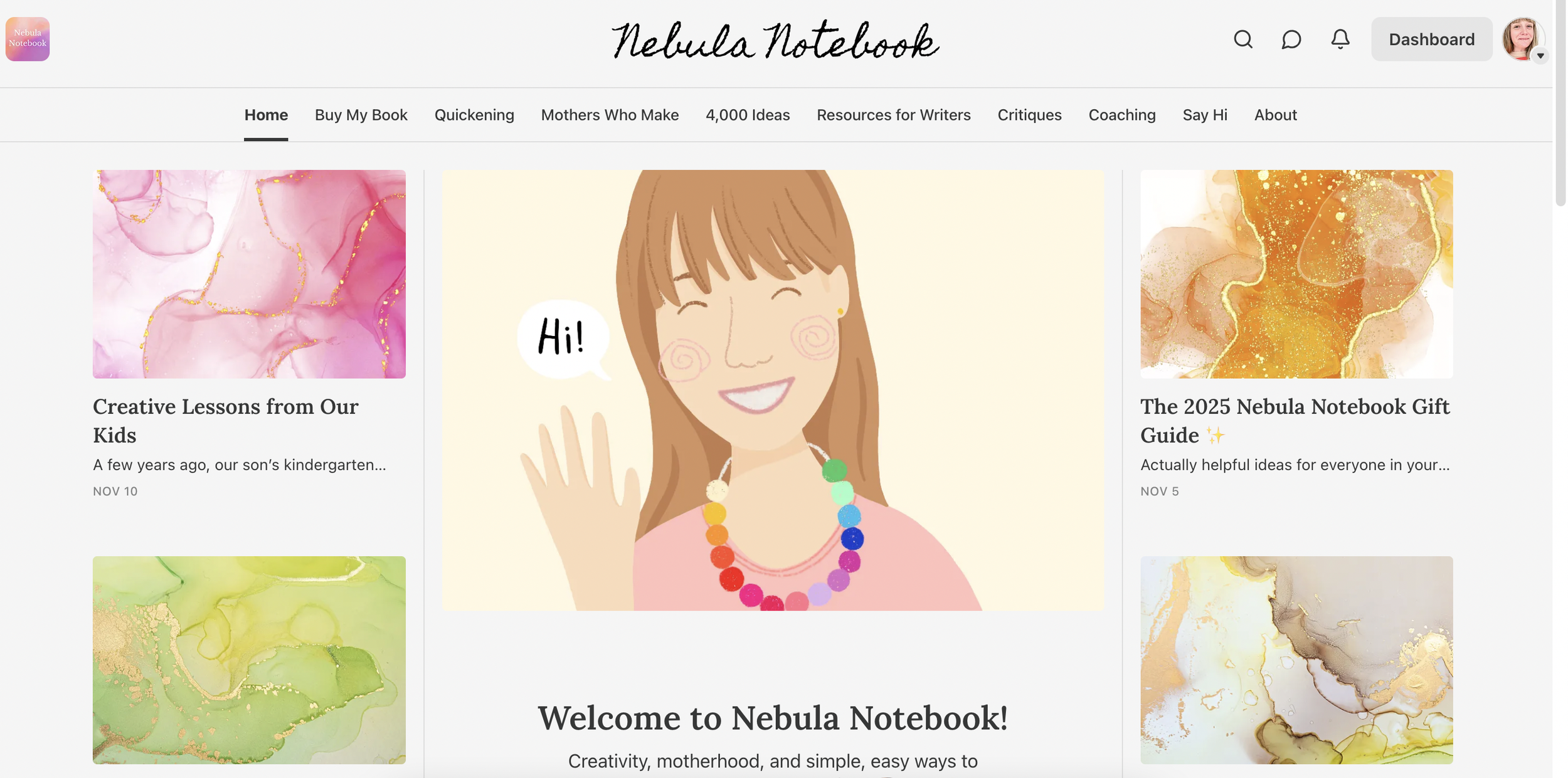 I’ve worked on hundreds of children’s books for clients like Chronicle Books, Storey Publishing, and Bravery Magazine. I love fairy tales, can-do characters, and stories that celebrate our inner wild things. Picture books, chapter books, and nonfiction for kids are my areas of expertise. I like weird crossover projects too! I also write about creativity and motherhood for sites like Hello Gloria, Mother Untitled, and my own Substack, Nebula Notebook. I believe in having fun and cheering each other on along the way. I’m here to help you find ease and joy in the creative process so you can keep going.